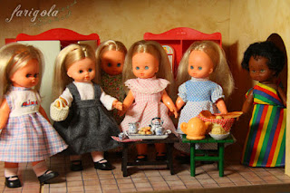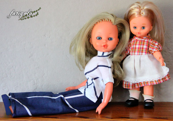 Y la última en llegar, pero no por ello menos querida, esta rubiamix, que por lo visto, tuvo una dueña muy peluquera que le dio por pintarle el pelo... afortunadamente, no se le ocurrió coger las tijeras. No he conseguido quitarle ese extraño color, pero ya me he acostumbrado. Tiene una carita muy dulce también y creo que es muy apropiada para lucir el vestido campera o casa de la pradera (yo con los nombres que se ponen a los vestidos de los 80s me pierdo).